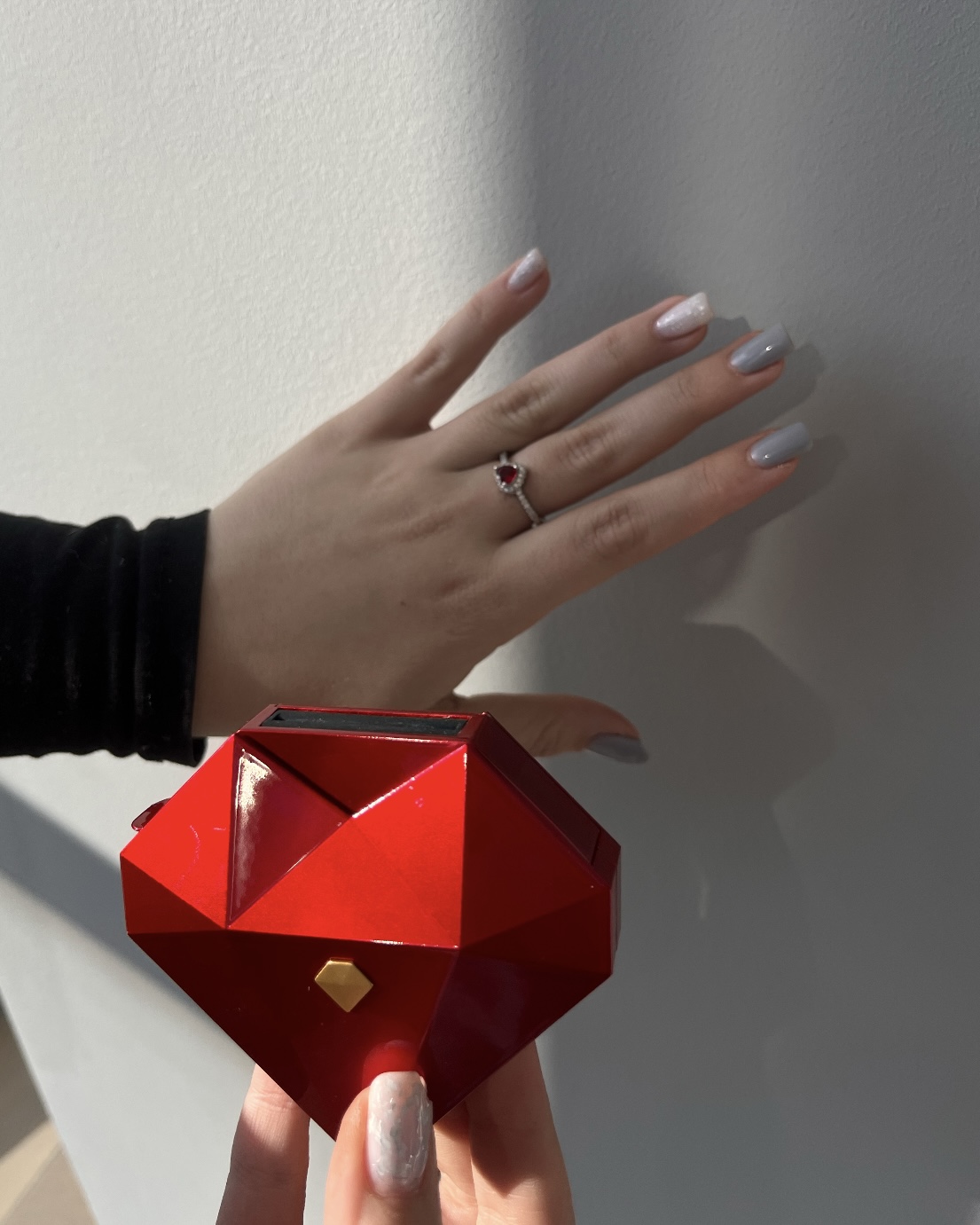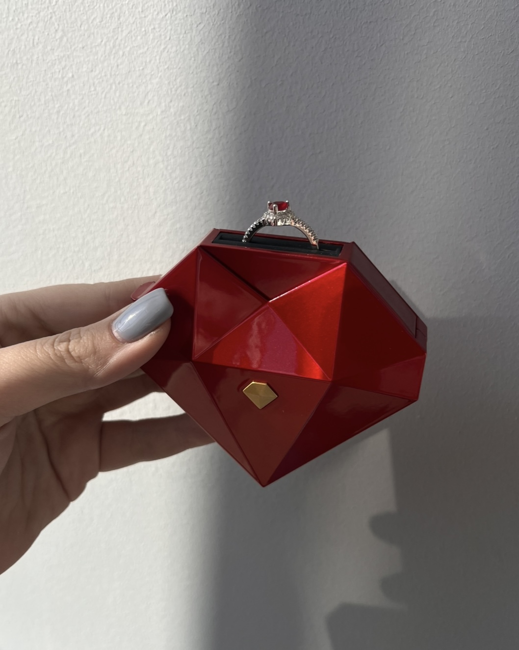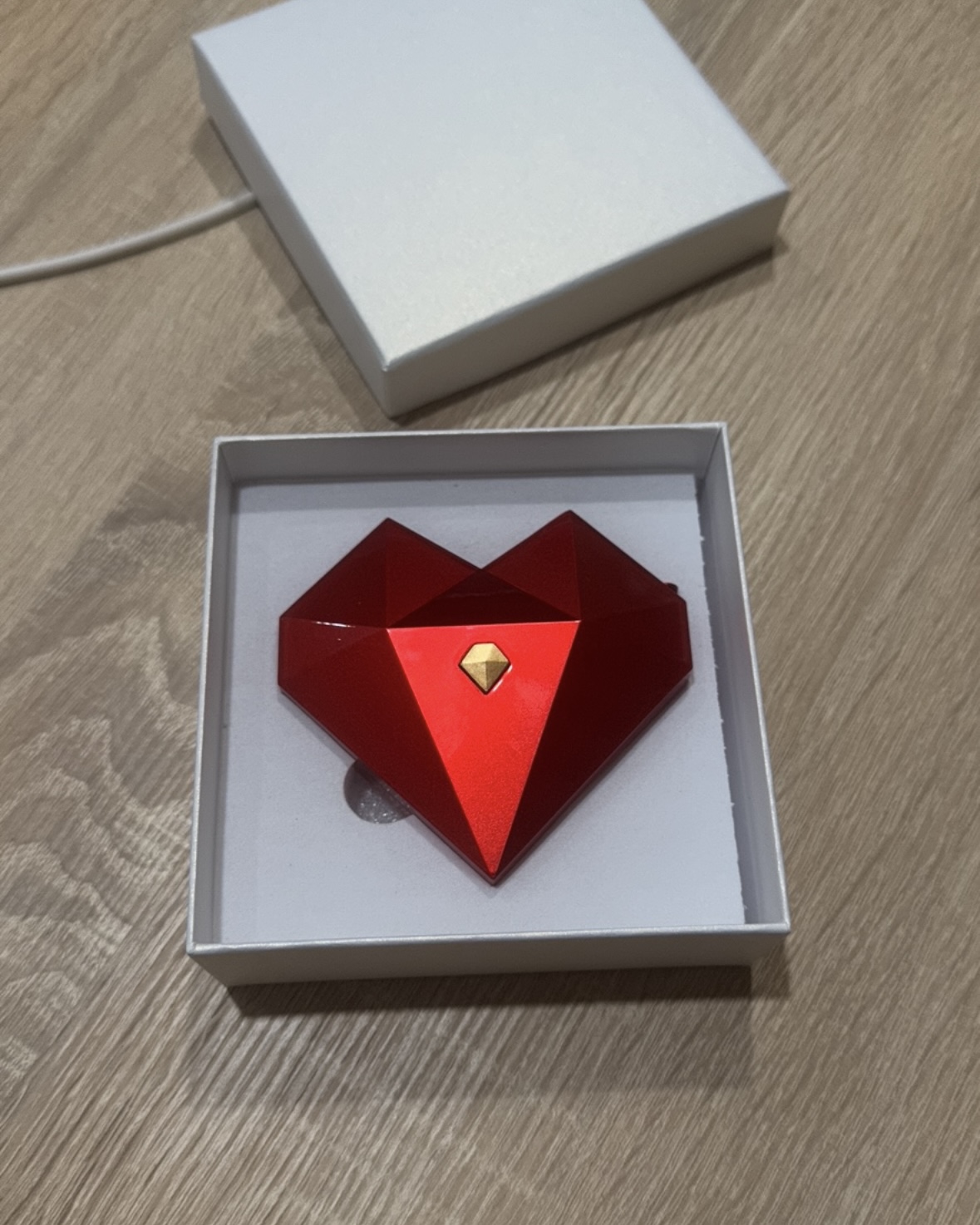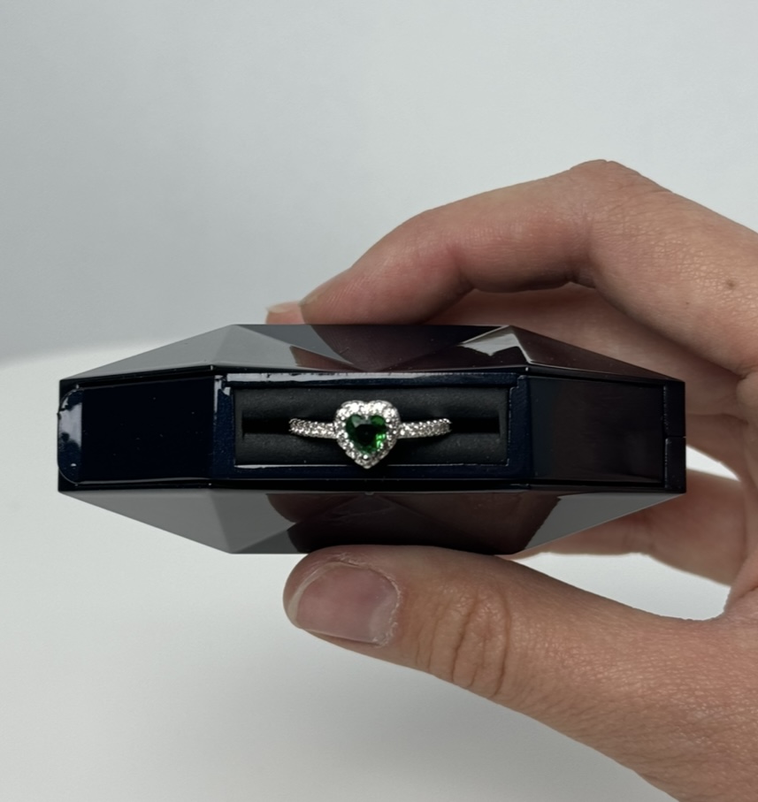 Скринька виглядає як маленький діамант: грані красиво відбивають світло, а блискуча вставка додає витонченості.